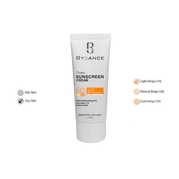 - ضد آفتاب رنگی بیزانس SPF50 پوست چرب، مراقبت از پوست در برابر نور خورشید