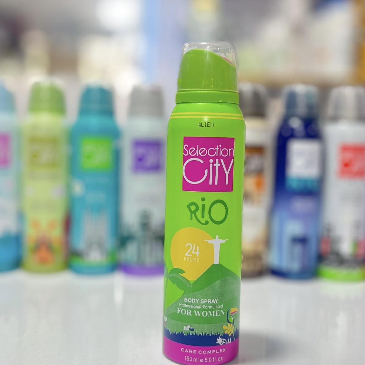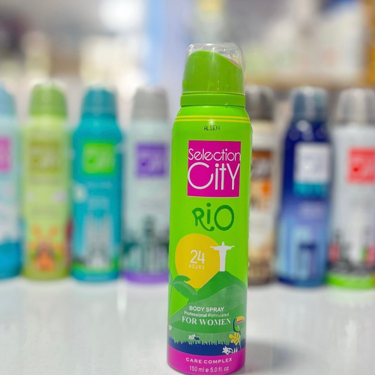 اسپری های جدید 150 میلی لیتری سلکشن سیتی با ۴ رایحه منحصر بفرد که حال و هوای شهر های زیبای جهان را برای ما به ارمغان می آورد. این اسپری ها با ماندگاری 24 ساعته برای خانم ها و اقایان ساخته شده است که جذابیت شما را به وسعت شهر های زیبای جهانی میرساند. اسپری خوشبو کننده بدن مردانه مدل رم 150میل سلکشن سیتی دارای ماندگاری بالا میباشد که استفاده از آن باعث می شود تا در طول روز بدن شما خوشبو باشد. همچنین پخش بوی عالی این اسپری باعث می شود تا در هر مکانی که حضور دارید همگان متوجه رایحه ی اسپری بدن شما شوند. فرمولاسیون این محصول ضد حساسیت بوده و به هیچ عنوان حتی برای پوست های حساس ایجاد آلرژی یا حساسیت نمی کند. استفاده از این اسپری به کاهش تعریق بدن نیز کمک میکند.