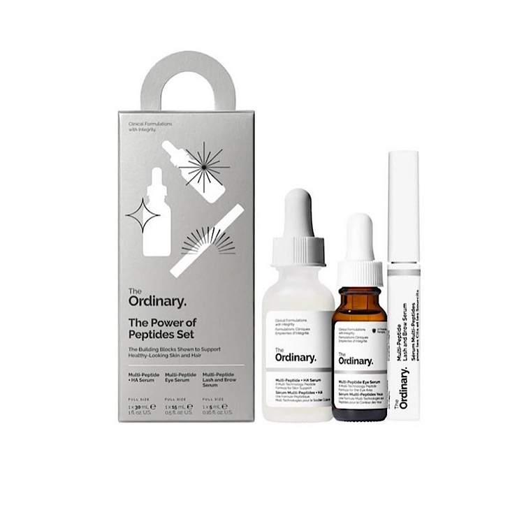 مجموعه Power of Peptides شامل سه مولتی پپتاید از برند The Ordinary است که با استفاده از فناوریهای پپتیدی قدرتمند، نگرانیهای متعدد را در صورت و چشمها هدف قرار میدهد. با افزایش سن، عناصر ساختاری مانند کلاژن و الاستین تخریب میشوند که منجر به علائم رایج پیری مانند خطوط ریز و چین و چروک، از دست دادن استحکام و کشش میشود. پک پپتاید اوردینری به از بین بردن این نواقص پوست و همچنین حمایت از ظاهر تراکم مو کمک می کند.