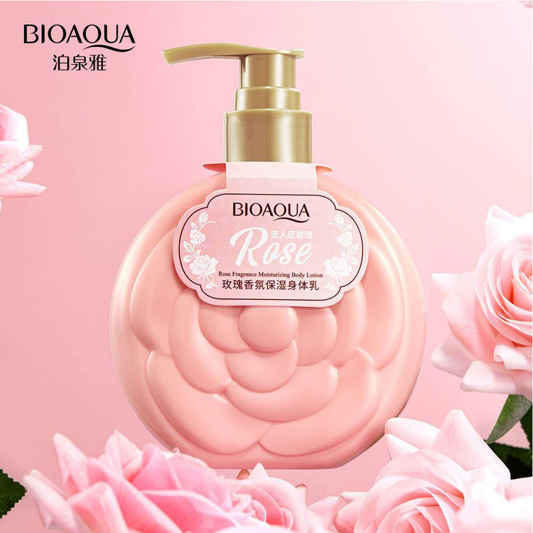 لوسیون بدن بایو اکوا مدل گل رز حاوی نیاسین آمید و ویتامین E و با رایحه ای دلپذیر مناسب استفاده بعد از حمام است. این لوسیون بدن با رایحه گل رز برای آبرسانی و مرطوب کنندگی عمیق پوست بسیار مناسب است.